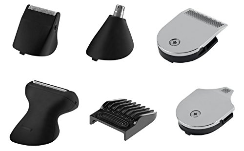 Il prodotto, multiuso, è idoneo per la cura di barba e peli del corpo. Possiede un motore ad alta velocità ed una lama mobile, che è rivestita in titanio. Il titanio ha funzione di proteggere l’affilatura della lama, poiché è tre volte più duro dell’acciaio inossidabile. Questo consente un taglio professionale in un solo passaggio. La tecnologia Wet & Dry permette di usarlo anche sotto la doccia. Dotato di un rasoio per il corpo, con un regolatore di lunghezza dei peli da usare prima della rasatura, in modo da non provocare irritazioni della pelle. Dispone di un pettine per la barba, che è regolabile in 5 posizioni, e di una testina rotante per l’eliminazione degli antiestetici peli del naso e delle orecchie. Il pettine barba ha un’impostazione di precisione di 1 mm, e sono possibili 5 diverse lunghezze di taglio. Con il rasoio di precisone 25 mm si possono rifinire i particolari del taglio barba.
